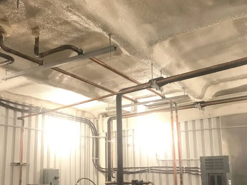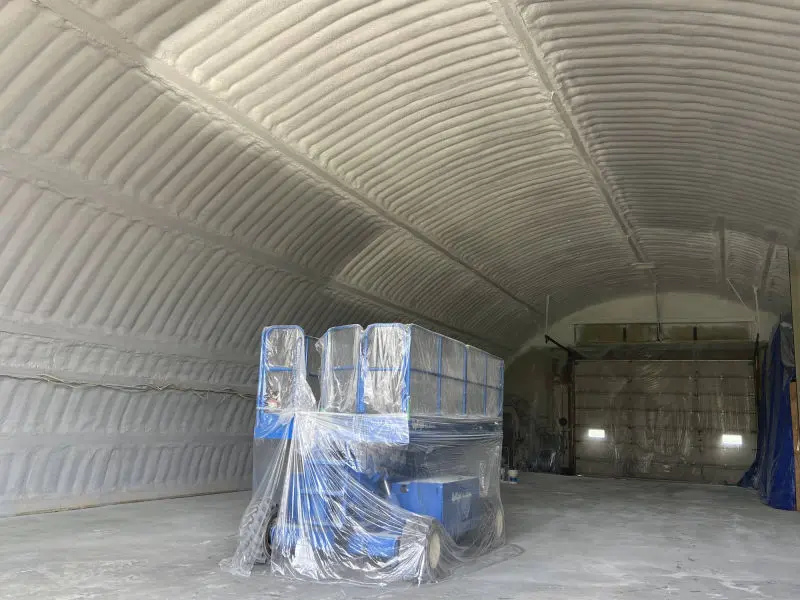 By code spray foam has to covered by an approved thermal barrier(fire barrier), in Canada there is no such a thing as fireproof foam. Spray foam has to be covered by a secondary approved product such as drywall, plywood, osb or if those aren't viable options then an approved thermal barrier spray can be used. At RRSO we offer several different thermal barrier options to protect spray foam depending on the needs and specifications of the project. We are experienced in application of various CCMC approved spray applied thermal barrier products like DC315, Monokote-z3306 and ADFire 7TB.